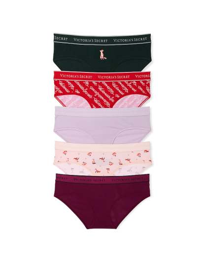 Victoria's Secret 5-Pack Logo Cotton Hiphugger Panties Smooth