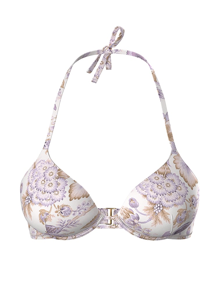 The maximum-lift Push-Up Bra you know and love gets the swim treatment in luxe new fabric, complete with our signature add-2-cups padding and adjustable halter straps with golden logo hardware.